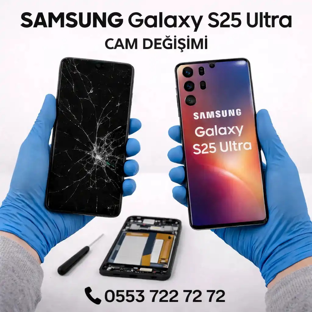 Samsung Galaxy S25 Ultra gibi pahalı ve hassas cihazlarda cam değişimi ciddi uzmanlık gerektirir.