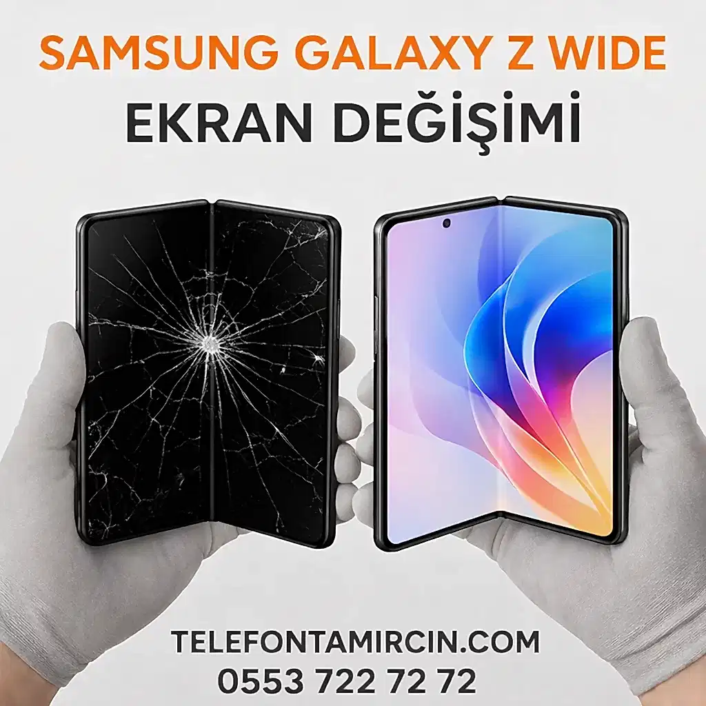 Samsung Galaxy Z Wide Fold ekran değişimi yüksek hassasiyet gerektirir. Katlanabilir yapı ve esnek panel sistemi nedeniyle uzman teknik servis tercih edilmelidir.